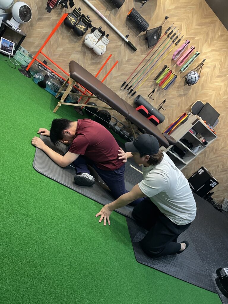 ここで丁寧に伸ばすことで、疲労の蓄積を防ぎ、次回のセッションまでのコンディションを整えます。膝が痛い方の場合は、太ももの前後、ふくらはぎ、股関節周りを中心にゆっくりと時間をかけてケアします。