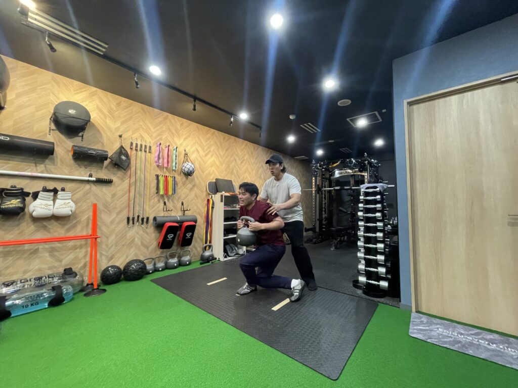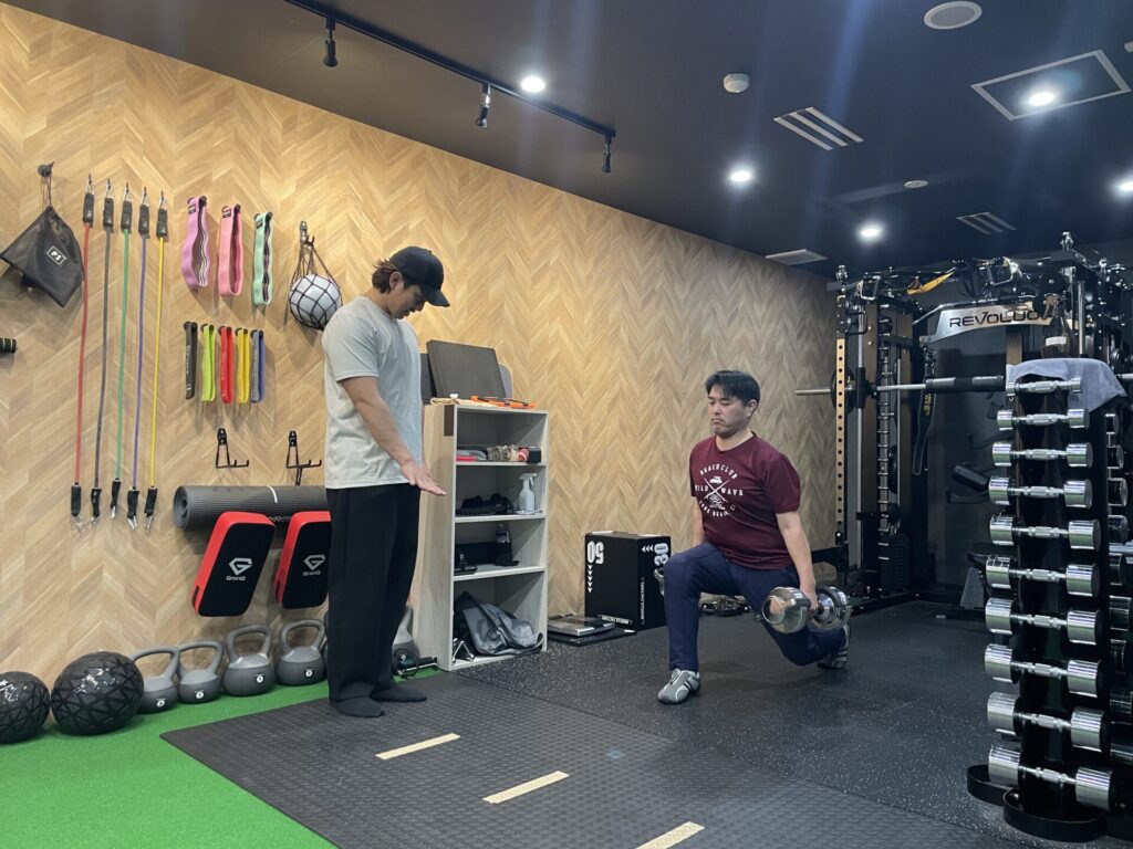 特に階段の上り下りや立ち座りで違和感がある方は、トレーニングに対して強い不安を持っています。しかし、私たちはまず“鍛えること”よりも“状態を知ること”を大切にしています。痛みがある場合、いきなりスクワットや負荷の高い種目を行うことは決してありません。